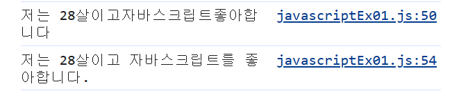 만일, 여러개를 한꺼번에 출력하기를 원한다면, 콤마를 사용해서 출력할 수 있고 예시)console.log(변수1,변수2,변수3);