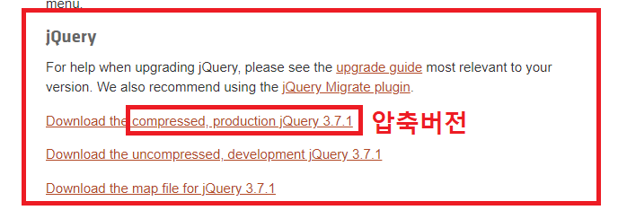 제이쿼리를 사용하기 위해서 부트스트랩처럼 제공하는 라이브러리를 다운을 받아와야 합니다.